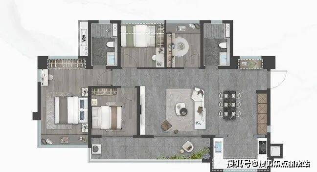 御景:建面约106㎡,四室两厅2卫,约13.7米5面宽,IMAX级宽奢采光