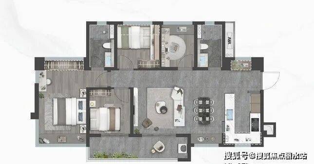 御澜:建面约89㎡,三室两厅2卫,主卧套房带衣帽间,高奢私域限定