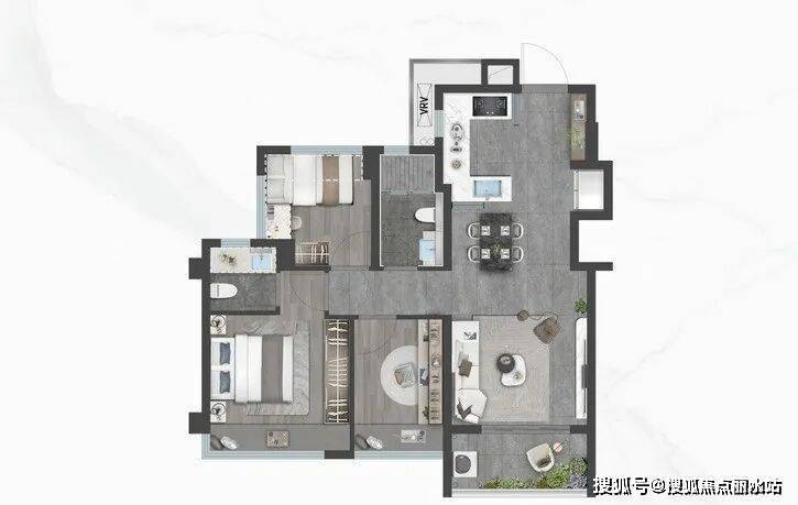 御雲:建面约80㎡,三室两厅1.9卫,创新型1.9卫设计,臻享从容生活