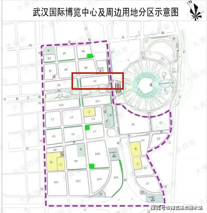 国博板块位于整个四新新城板块之中,国博片原本定位属于行政办公中心。