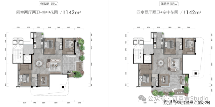 3.3-3.6m层高赋予空间阔境尺度,6.6米挑高的开阔,缔造约40-60㎡空中庭院。