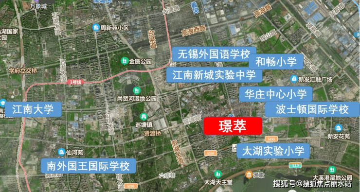 教育配套:约1公里左右,有太湖实验小学、华庄中心小学、华庄中学等;约4公里左右,往西有南外国王国际学校、江南大学,往东有波士顿国际学校,往北为无锡外国语学校、和畅小学、江南新城实验中学等。