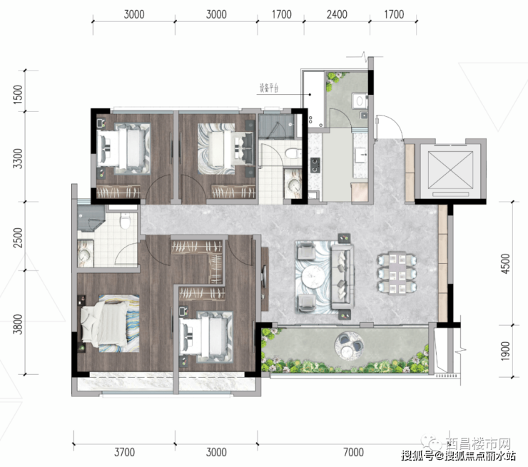 联通式阔尺7m阳台,迎接更多清风阳光·主卧套房设计·户型方正,利用率高