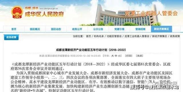 2019年10月,成华区公布了《成都龙潭新经济产业功能区五年行动计划(2018—2022)》,该文件明确提出了,到2022年,将龙潭新经济产业功能区建设成为带动市域东部、引领西部的千亿级都市生态品质新城。