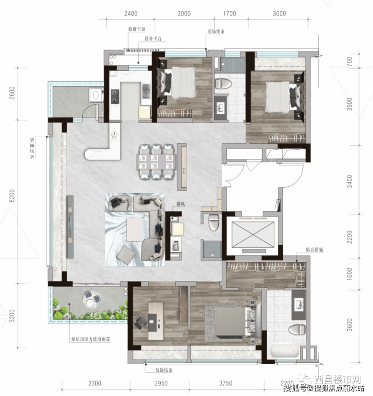 双阳台客厅设计,采光充足·主卧套房设计,阔绰舒居生活·中西双厨卫,营造家庭欢乐时光·入户空间,增添归家尊崇仪式