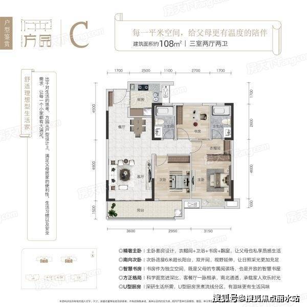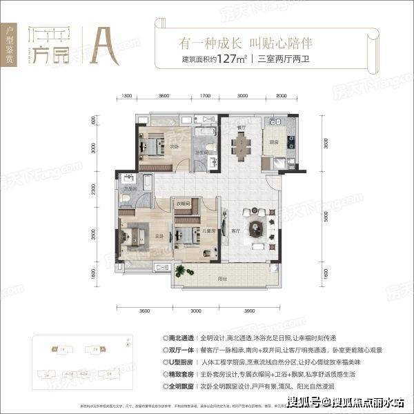 实用性三房户型,三开间朝南、双阳台设计,采光通风效果更好。动静分区,居住舒适度较高。主卧套房设计,带独立的衣帽间与卫浴,能够保证私密性,主卧还是南北通透的户型,通风效果更好。方园电话TEL:400-8787-098转接5555
