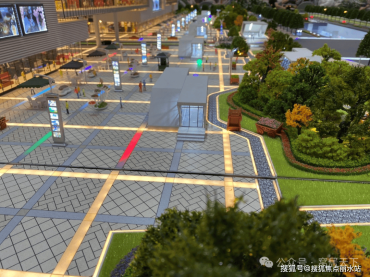 社区园林小区人车分流,东广场采用四层立体屏障式绿化,达到美观,吸噪音,防尘,净化空气,提高城市绿化的作用;在绿化区中间,会做几条石材小道,绿化与商场之间,穿插摆放着美观的雕塑和景观小品等。