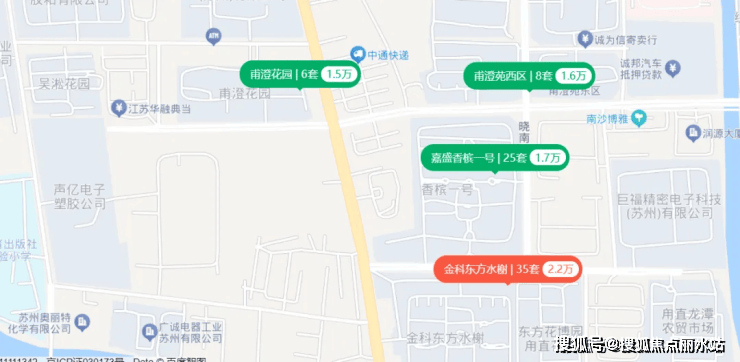 紧邻甫澄路、南沙路,邻近沪常高速甪直南出口,周边3公里内有叶圣陶实验小学、万嘉生活广场、甪直人民医院等教育、商业、医疗资源。板块内二手房挂牌价约1.5-1.7万/㎡,参考同类型项目万盛江南备案价2.9万/㎡,沁沄居预计售价或突破3万+/㎡。