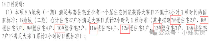 从规划图的日照说明可以看出,B地块合计有27户不满足大寒日累计2小时的日照标准。