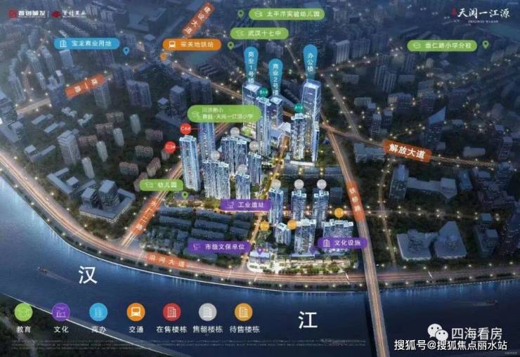 首创?天阅一江源,紧邻武汉城市主轴线——解放大道,同时站位城市二环内核,近揽教育,生活,医疗,商圈全维度城市配套,荟萃城市最优越的资源。以城市复兴为本,透过多元、共生的开发思路。