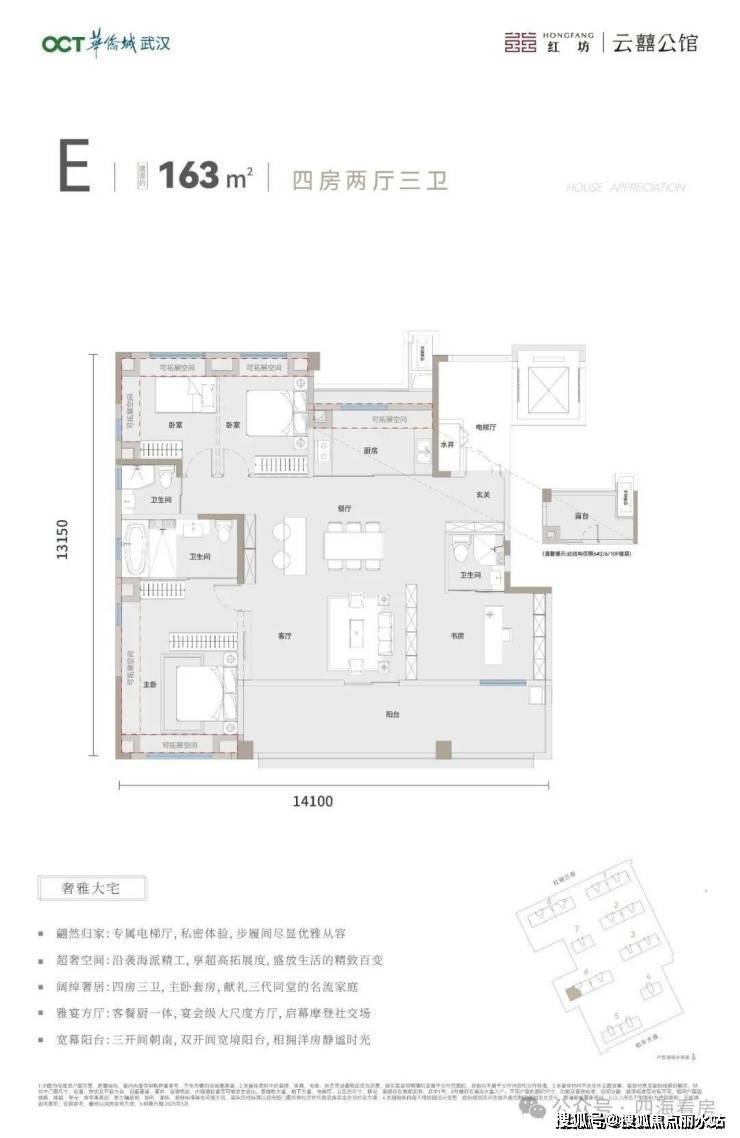 红坊丨云囍公馆,作为武汉首个四代纯低密摩登洋房,打造建面约120-169m²四代洋房,以超高得房率的新一代标准,为全武汉启幕摩登生活新向往。