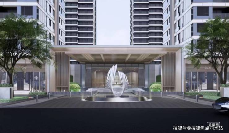 以星涡之形为大门主景,结合酒店式落客区、入口景墙、迎宾水景、特色树阵,营造归家仪式感。