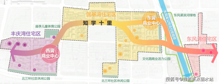 四公园:东风渠滨河绿地、北三环社区休闲公园、文化路商业活力公园、庙李儿童体育公园