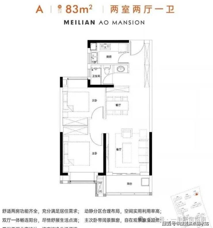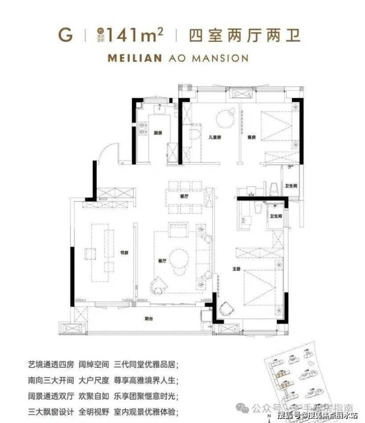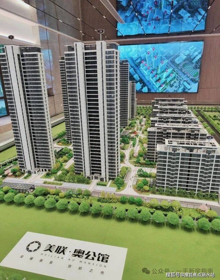 美联奥公馆占地面积约5.3万㎡,总建面约23万㎡,容积率约3,共1318户,车位配比约1:1.45,人车分流设计,包含6栋小高层6栋住宅和1所幼儿园。
