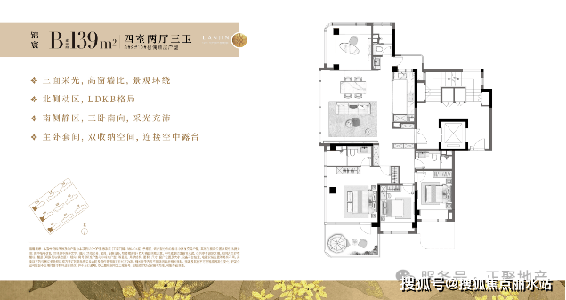 建面约119㎡、129㎡、139㎡、188㎡空中花园住区,约94%-112%高空间使用率,LDKB一体化设计,重塑空间想象。
