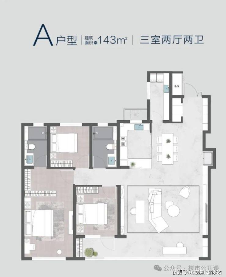 产品:3栋高层,一个单元,两梯四户,总高23层