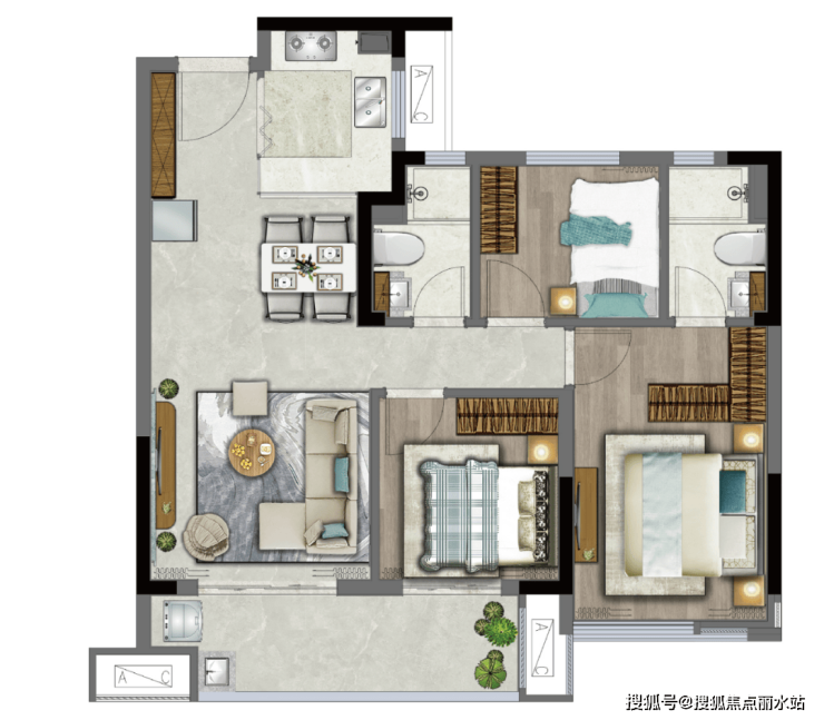再者89㎡做三房两卫,小面积大功能: