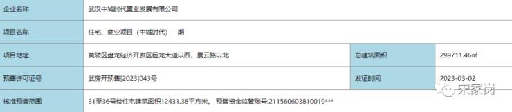 据武汉房价大数据信息:近日,武汉盘龙城宋家岗楼盘“城建新时代”已获预售许可证,即将开盘,此次叠拼备案均价22000元/㎡ 持平上期。