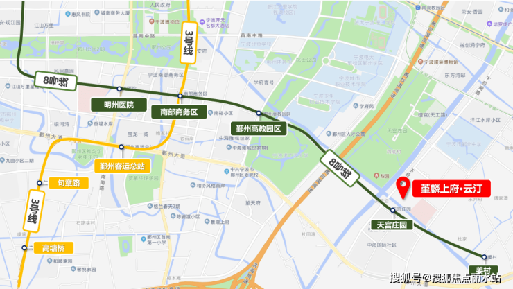 在建中的地铁8号线天宫庄园站位于项目西北侧直线距离约300m处,2站到南部商务区站,便捷换乘3号线通达鄞州各大商圈。