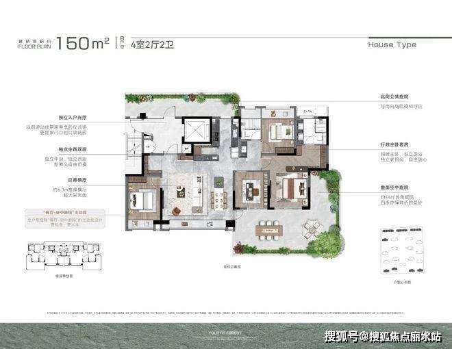 户型上,同样以场景体验思维打磨每个空间。以建面约150㎡户型为例,从约10㎡独立光厅入户,抵达约6.3米宽境横厅,LDBKG一体化动线设计,舒展三代同堂的画卷;中西双厨设计,烟火气中流淌生活的温情;而B户型约62㎡的空中庭院,可以是孩童的探险营地,也可以是家庭影院的慵懒空间。
