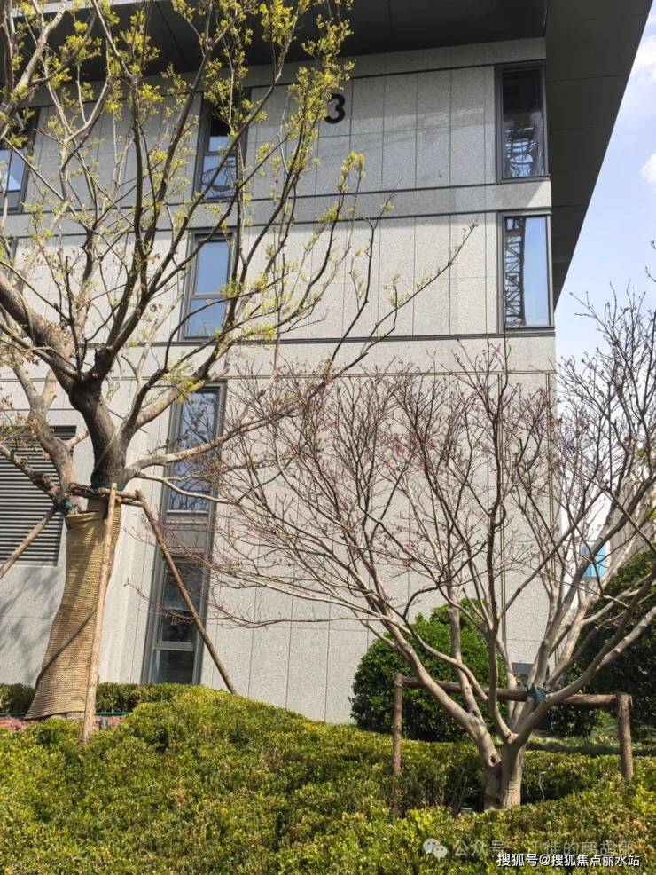 外立面:石材+铝板+玻璃幕墙组合,窗墙比70%,LOW-E三玻两腔玻璃(隔音降噪)。