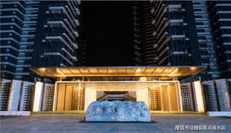 星幕主大门,以现代工艺诠释传统礼序,融合LED星幕大门头、优质爵士白景墙、泰山石小景等元素,打造气势恢宏的归家第一印象。