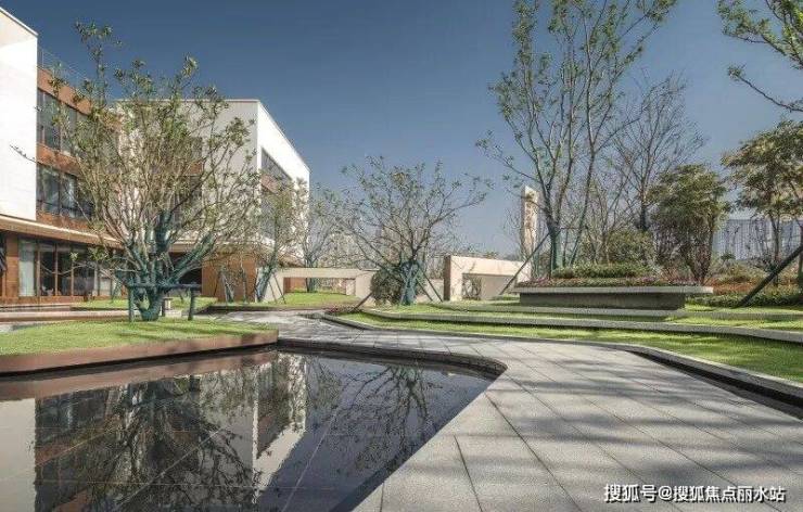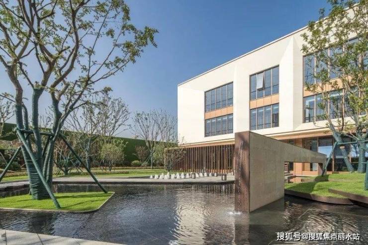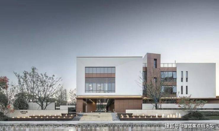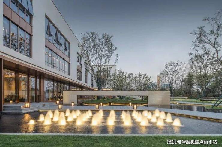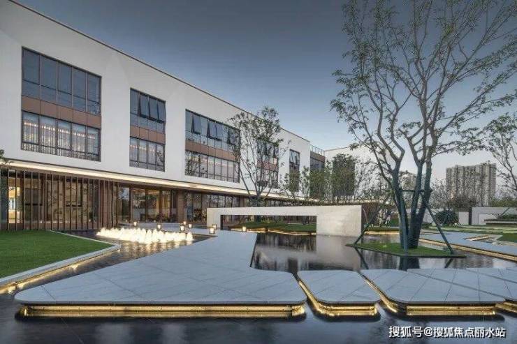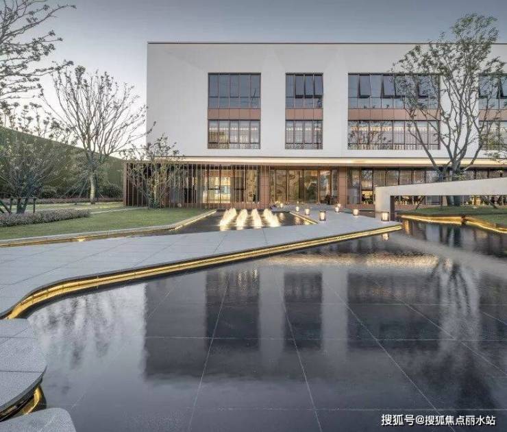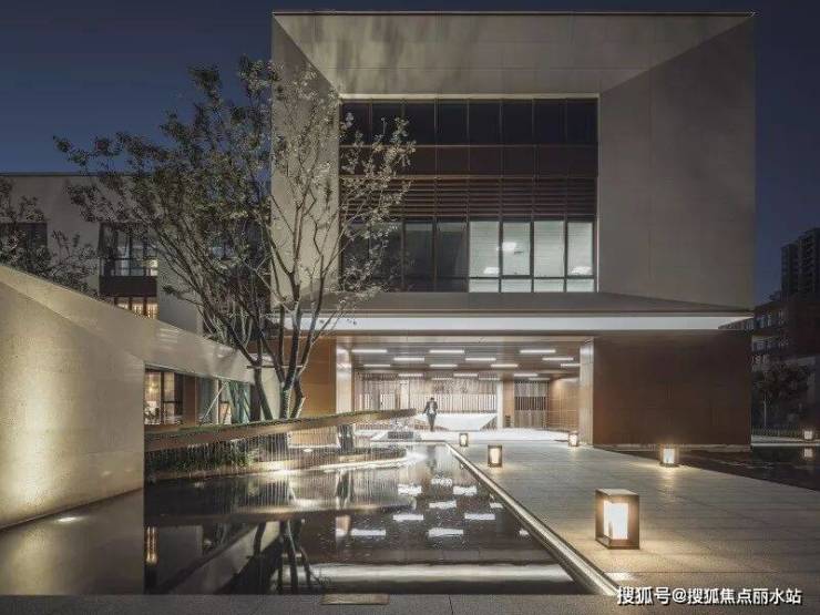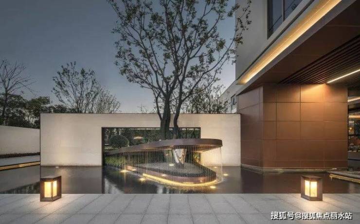 销售中心入口场景营造出码头的感觉,两侧的阶梯水景就像码头栈道两侧的江水,中间是归家的路途。