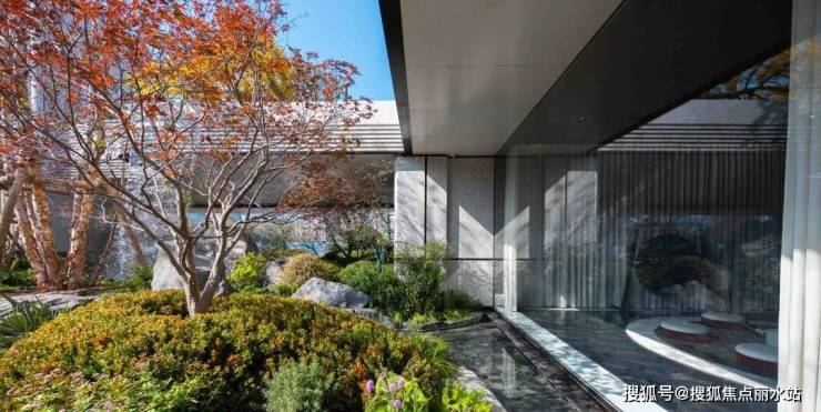 整个生活馆的空间布局非常有看点。最吸引房师傅的是,无界观景玻璃。透过巨幅玻璃,映入眼帘的是天空光影云涧园,整个下沉水院的美景尽收眼底。