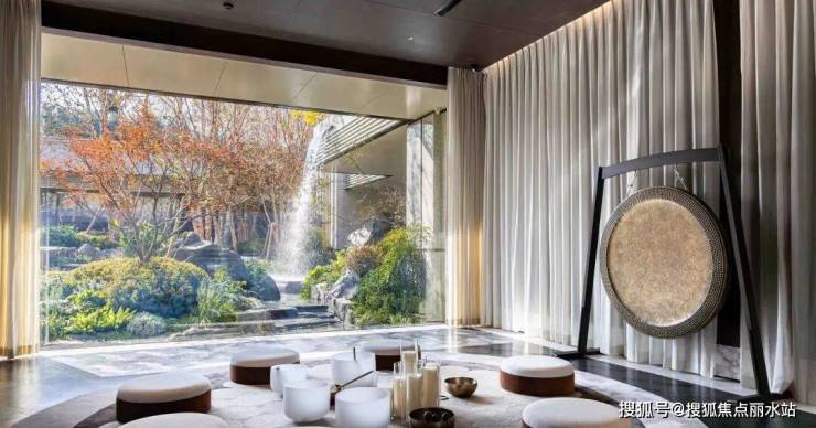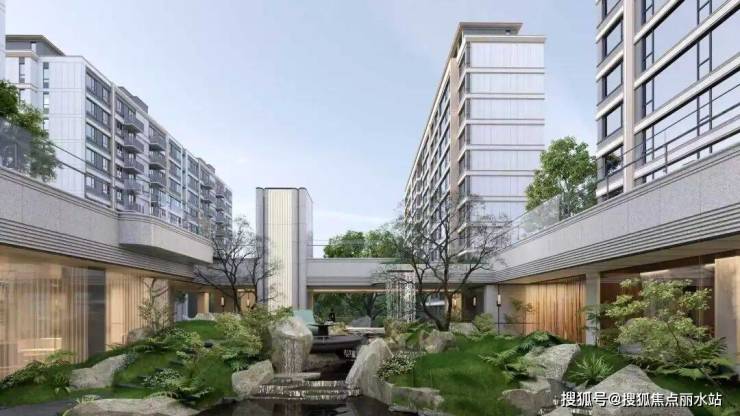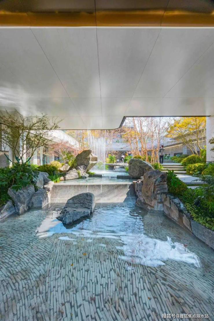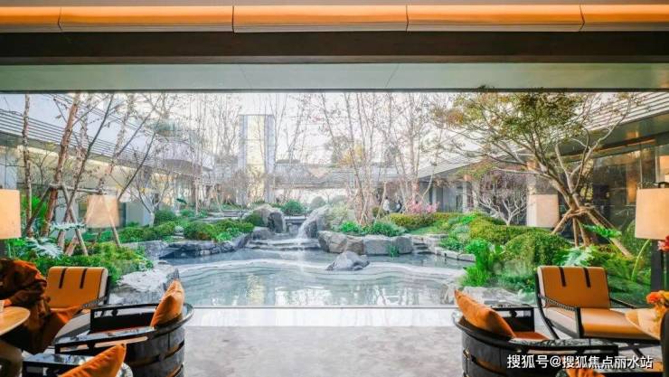 下沉水院是天空之境的另一个超配豪宅基因——取崂山自然景色之精髓, 引山水入院,用奇石逸水造景自然园林。