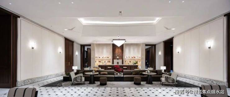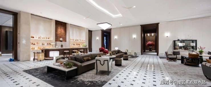 抬头往上看,室内顶部是钻石镂空艺术吊顶;墙面则是大面积使用暖灰色调高档石材,质感高级……这一系列细节呈现,不仅关乎美学,更体现了对生活氛围和高端生活的细致考量。