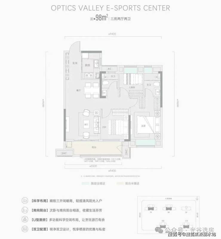 本次特价的户型是7/8/10/11号楼的中间户产品,建面约95-98平的三房两厅两卫。