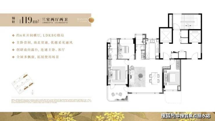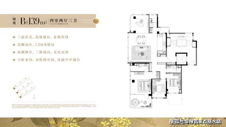 建面约119、129、139、188㎡空中花园住区,约94%-112%高空间使用率,LDKB一体化设计,重塑空间想象。