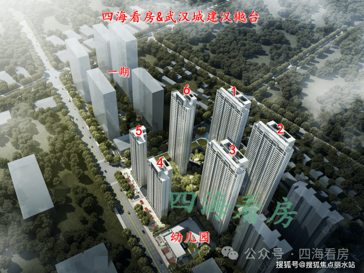 武汉城建汉樾台共分两期开发,一期已交付,目前主推的是二期。武汉城建汉樾台二期占地面积约3.2万方,总建面约20万方,容积率4.38,共1166户,机动车停车位1411个,车位比约1:1.13,人车分流,包含6栋高层超高层住宅和1所幼儿园,以及少量社区底商。