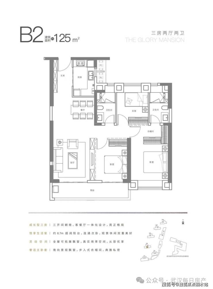 从户型格局来看,都是三开间朝南、大面宽、多飘窗的设计,没有明显瑕疵,适合改善人群。