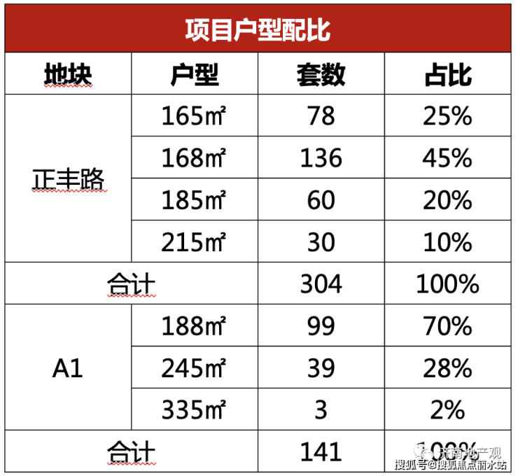 项目共规划14栋楼,共计445户,规划为9栋10-11F洋房,5栋13-17F小高层,户型面积为165-335㎡,主力面积段165-188㎡,定位高端改善客群。
