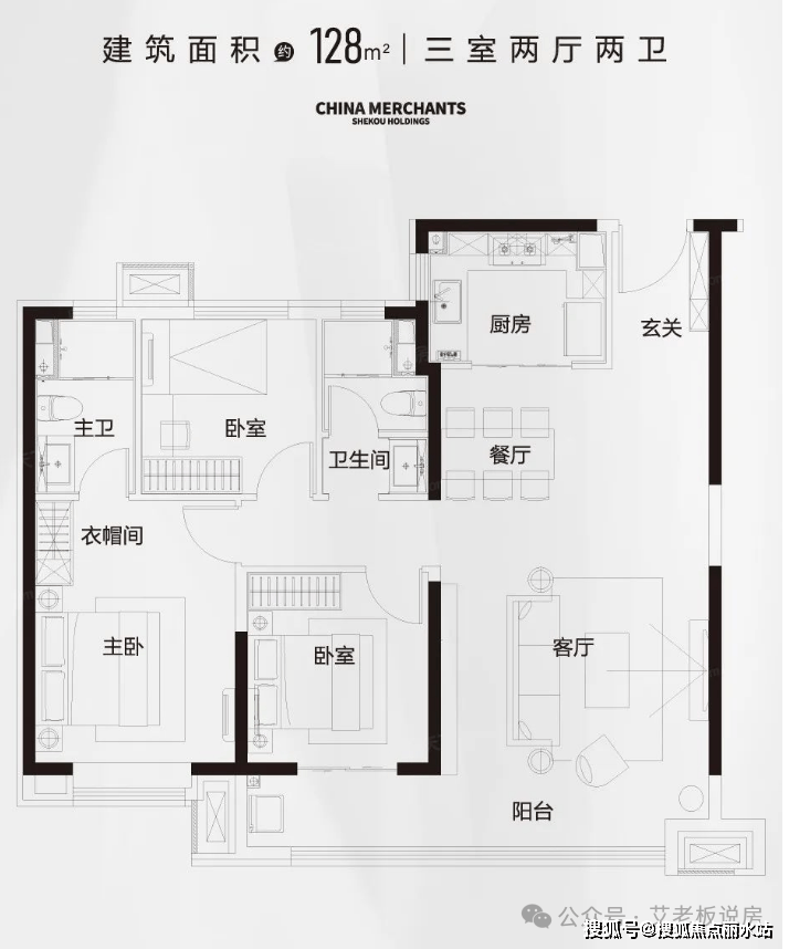 面积:128平米三室两厅三卫
