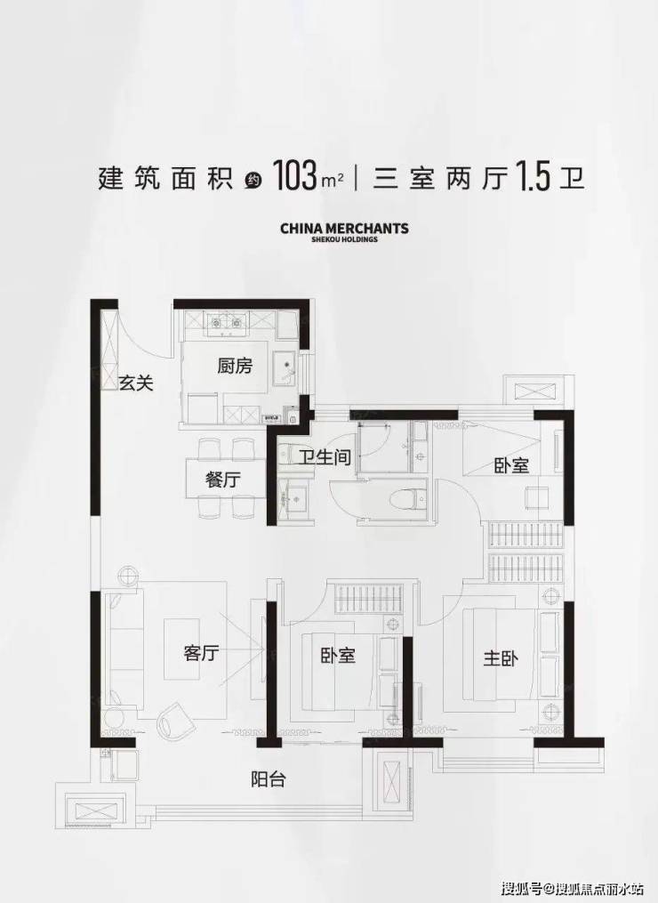 面积:103平米三室两厅1.5卫