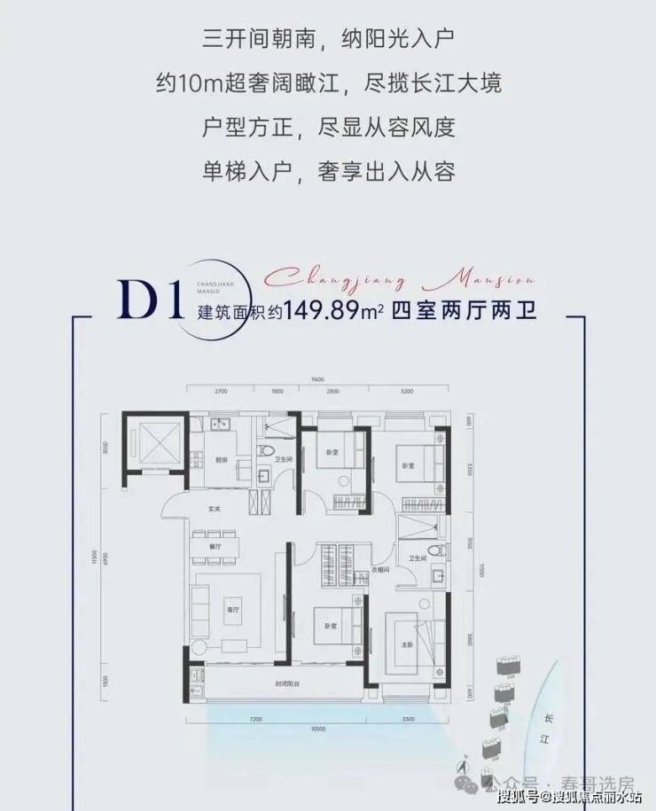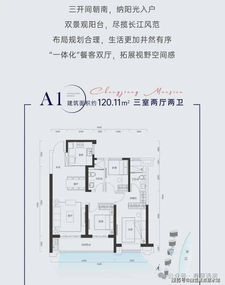 1、一线南向看江:项目位于一线临江位置,所有楼栋无遮挡,前排是江滩公园,提供优越的景观视野。