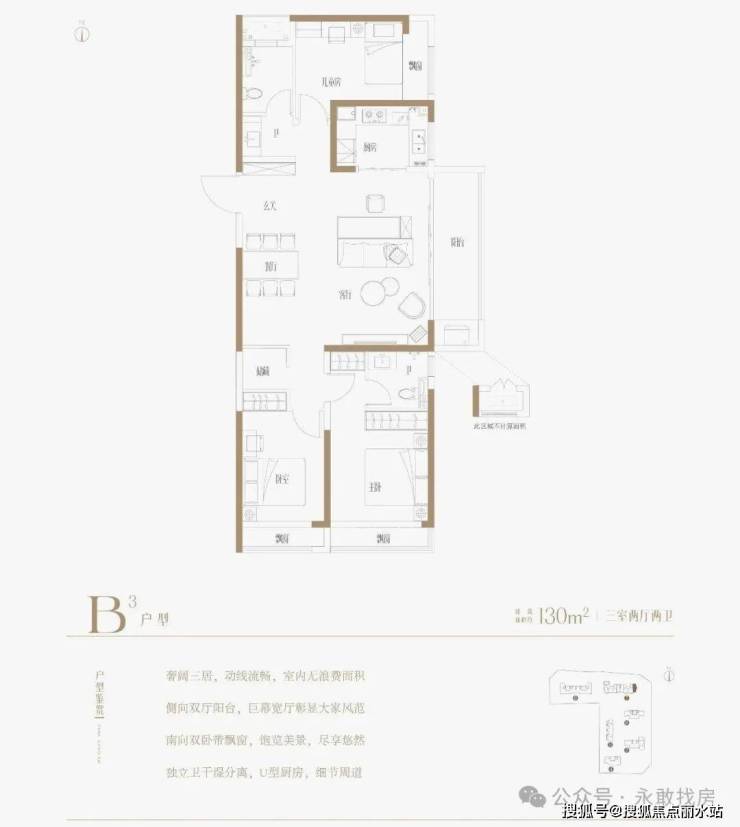 整个项目占地面积42亩,规划6栋楼,两梯四户,两梯五户设计,户型设计有70㎡两房,89㎡、115㎡、125㎡、130㎡三房,143㎡四房。