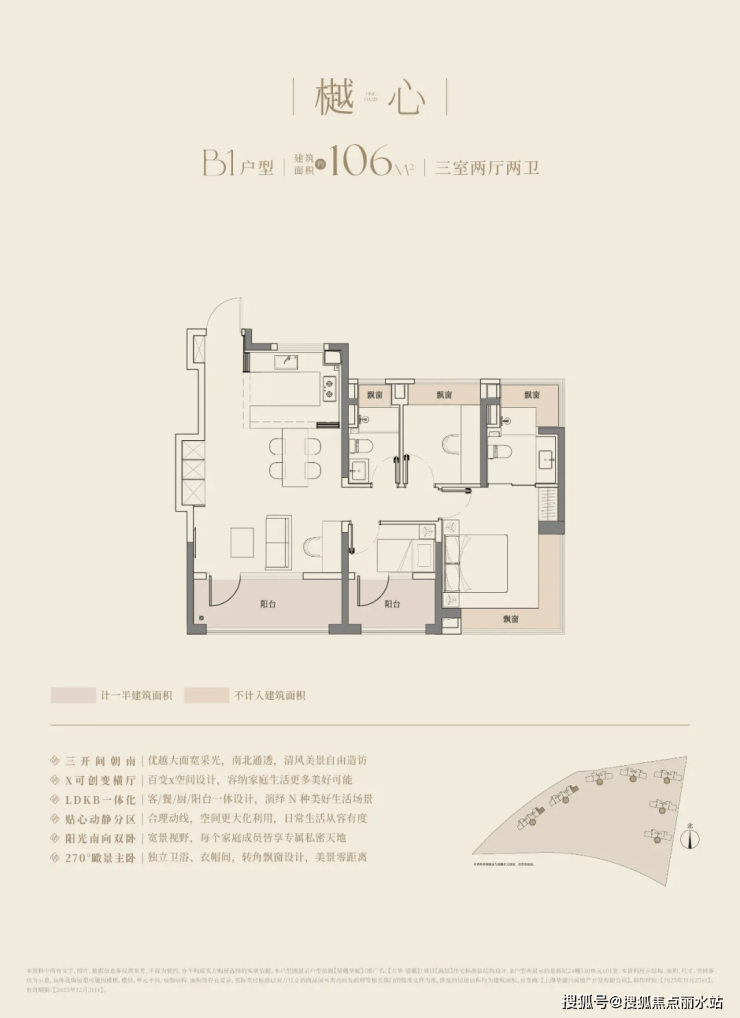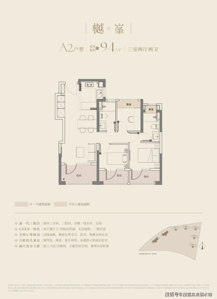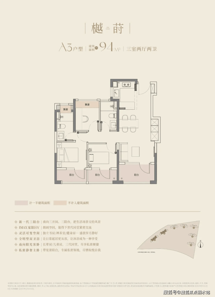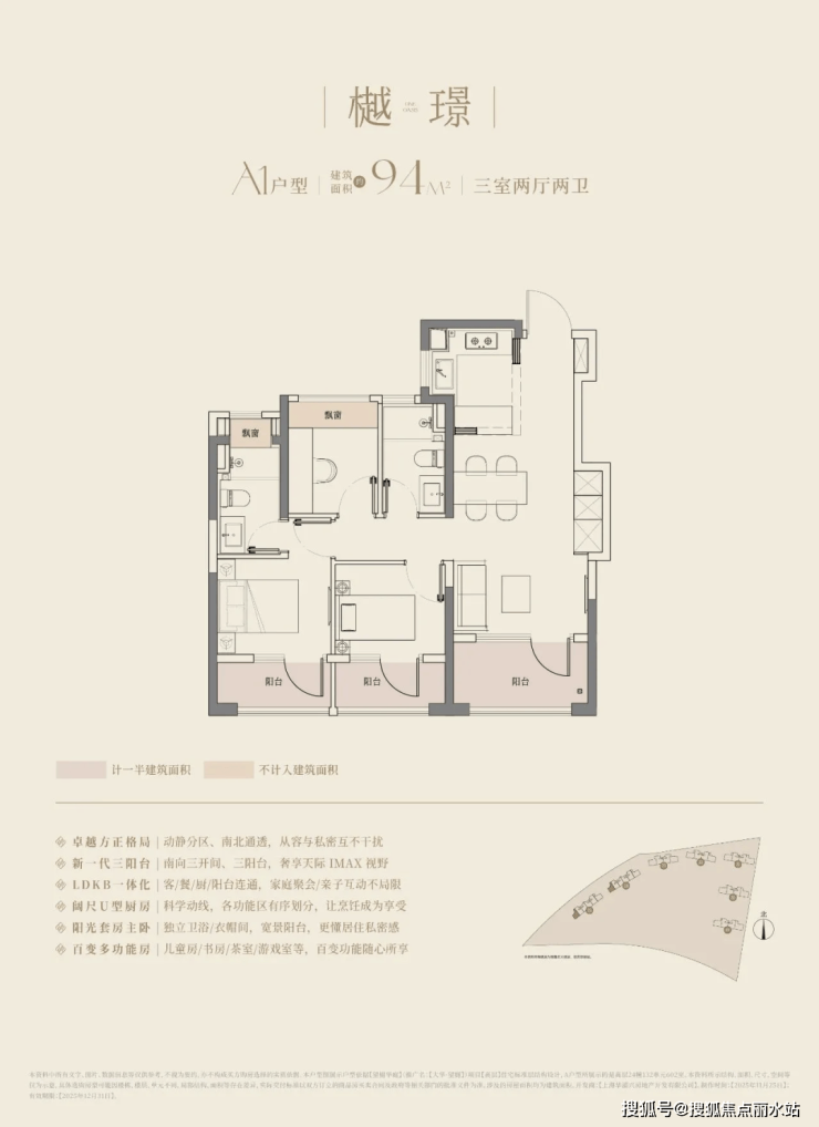 建筑面积约94-126㎡的全能尺度,全户型三开间三阳台配置,可以满足所有阶段家庭的空间需求。