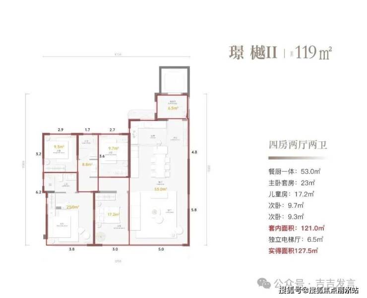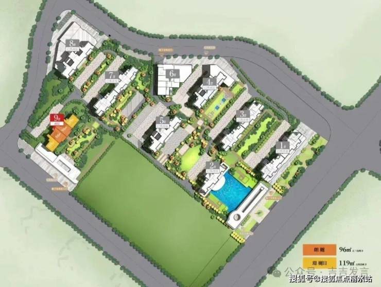 为33层设计,三梯四户配置,每户都有独立电梯厅,居住私密性与仪式感双在线。从东到西依次分布119㎡-96㎡-96㎡-119㎡,仅128户。