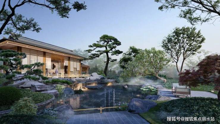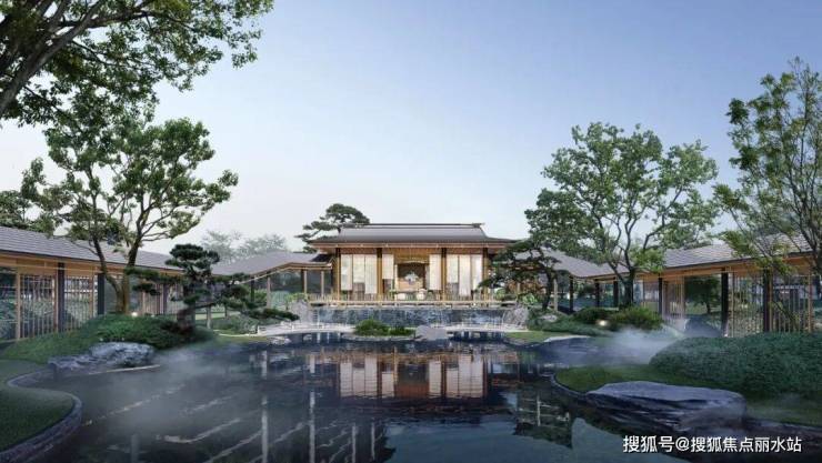 梧桐锦上以高规制的宋制门堂礼序,打造清泉迎宾、水月镜天景观。