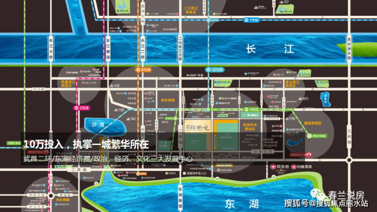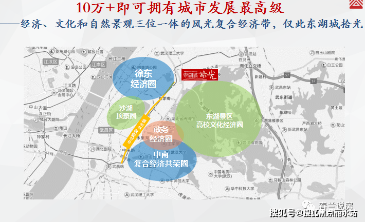 1、 城市发展最高级:徐东经济圈、沙湖顶豪圈、政务经济圈、中南复合经济共荣圈、东湖景区高校文化经济圈等经济、文化和自然景观三位一体的风光复合经济带