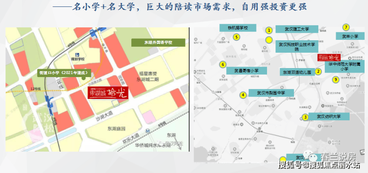 6、 陪读租赁需求高区:华师附小、外国语学校、武汉大学、武汉纺织大学等各类名校汇聚,巨大的陪读市场需求