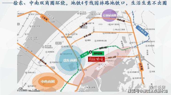 项目隶属东湖人文生态圈,是武汉四大商贸发展板块(武昌滨江商务区、中南中北带的华中金融城、青山滨江商务区、高铁商务区)的发展中心,这种核心商贸中心地段自古是兵家必争之地,因此,从选址之处,项目就占据了武汉城市发展的核心地段。
