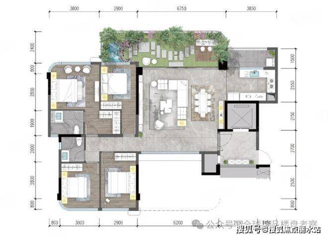 打破「底层才有庭院,顶层方得露台」的传统建筑模式,约6.2m挑高空中露台,将大平层与别墅花园的特性做到深度融合,让天空之境与自然花屿化为一岛,打造城市垂直森林花园森野秘境。
