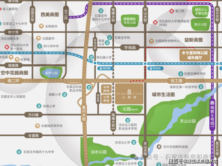 城发投·云徽颂承袭住建集团精工基因,继城发投·瑞晟府、云澜悦府、云山樾等一环豪宅后,以精工积淀与革新理念,倾力迭新省会“好房子”典范。项目占位城市发展主轴——复兴大街与南二环交会黄金十字,信工路快速路网通达四方,近享地铁3/6号线双轨畅达,高效链接主城繁华与高新产业集群。项目周边木兮里购物公园、北国益新超市等醇熟商圈汇聚。省三院湘江院区、省四院东院区等三甲医疗为健康护航。项目自建幼儿园,毗邻小初教育用地,书香浸润优智圈层。南侧为规划约36000㎡绿地公园,举步即享千亩天山公园,生态丰沛,让繁华都市生活与自然静谧诗意从容兼得。