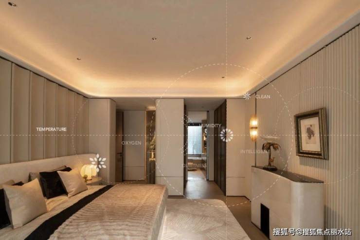 主卧套房也是一大亮点。方方正正的主卧套房,因为南向尺度够大,所以把洗手间也放在了南边,而且是三段式干湿分离。这两年,主卧套房小家化已经成为豪宅必修课,这一项在国家强制规范里面也没有涉及,但是招商很敏锐地抓住了改善客户的小心思,做了出来。