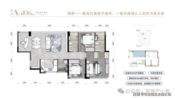 值得一提的是,项目部分户型拥有270度采光面,大幅提升了室内明亮度与舒适性。加之合理的赠送面积政策,使得产品性价比尤为突出。