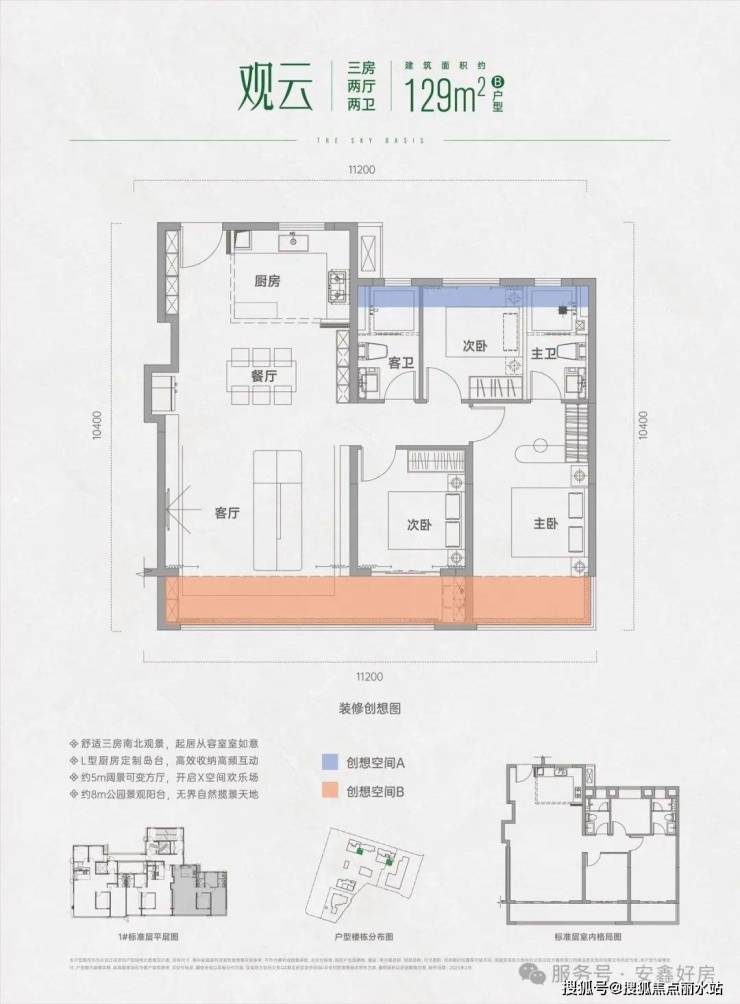 得房率提升至85~97%,百变空间(109m²🉑改大横厅2房,143m²🉑改大横厅3房);增加转角窗设计,拥有270°观景视野,采光效果更佳;主卧阳台优化,卫生间飘窗全优化,实际利用率更高;S 墙设计,冰箱嵌入更美观。